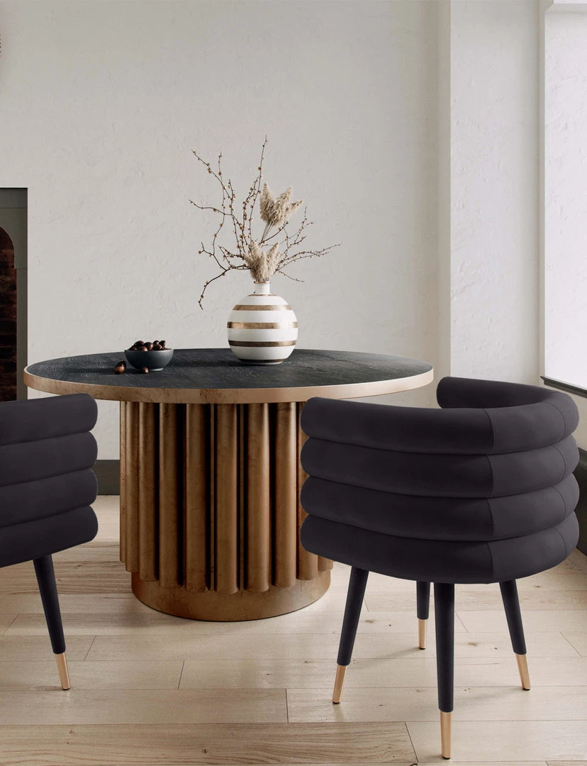 Description: With style to go around, the Joge velvet dining chair will supplement your home decor like no other. It is designed for comfort and shaped to entertain.