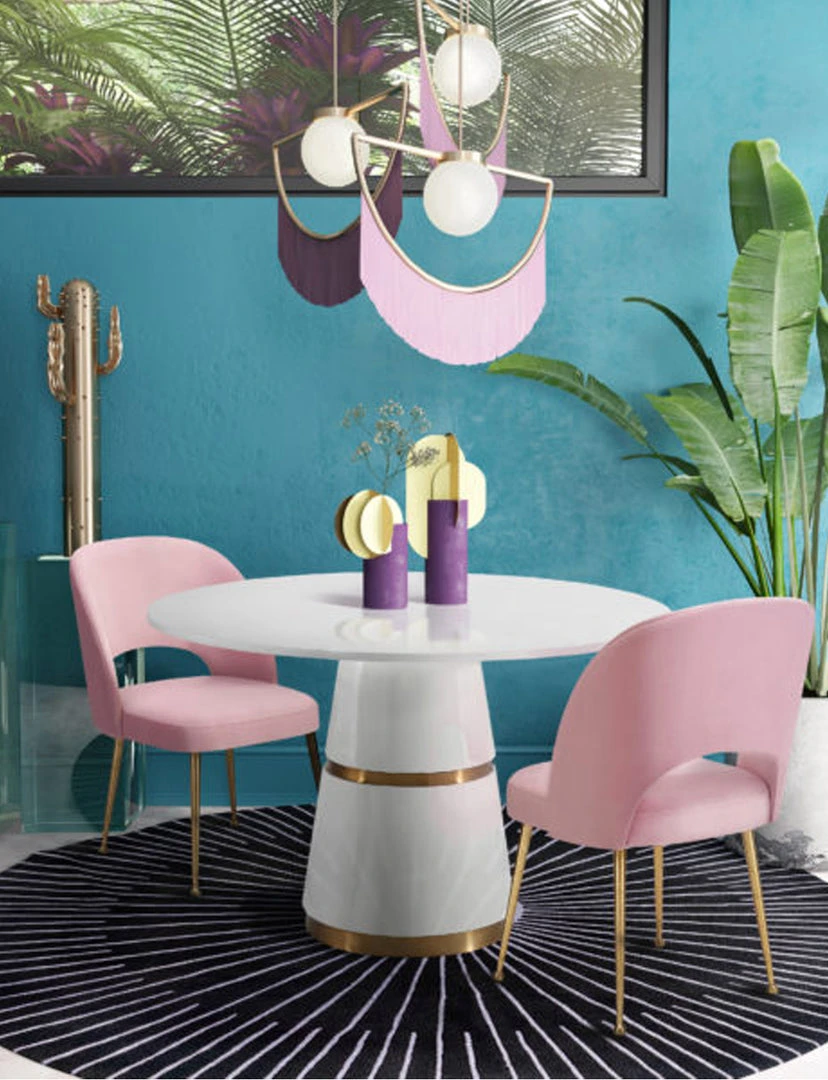 Our love for Hollywood Glam has inspired us to design the statement piece that is, the Renee dining table. Featuring a conical base and round table top, its clean white finish is beautifully complimented with two gold stripes. Up to four people can dine comfortably on this stunning table.