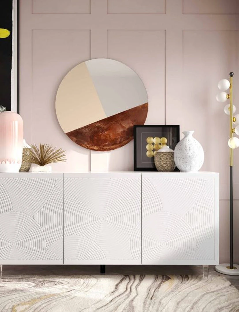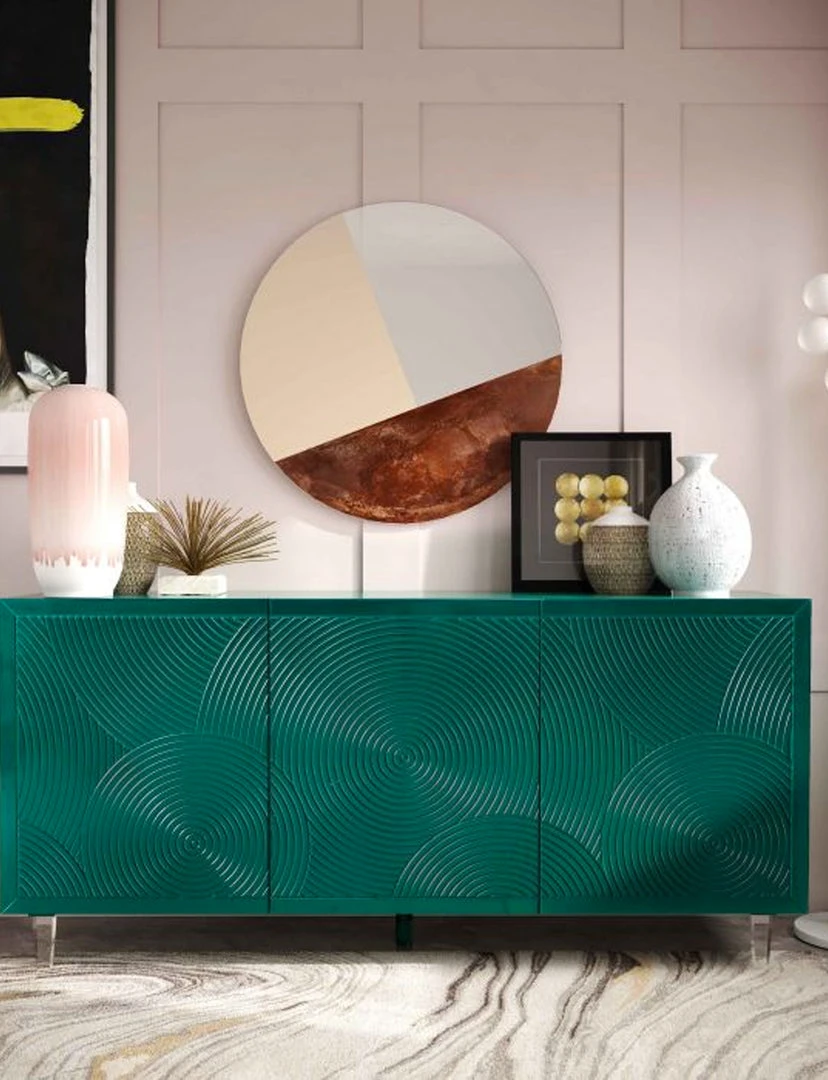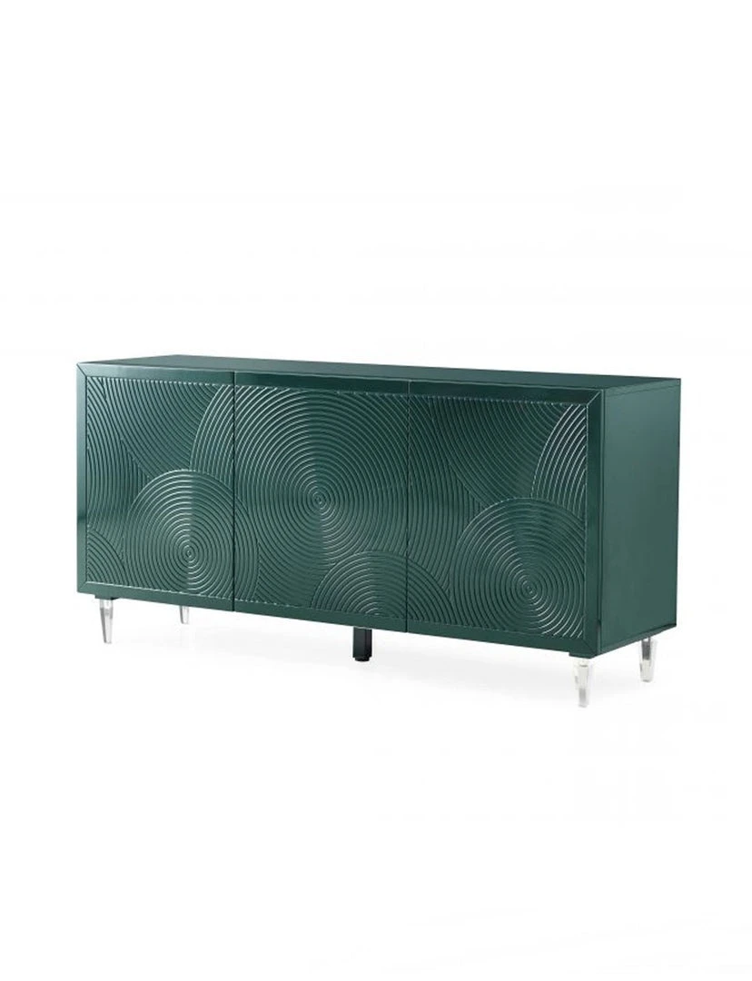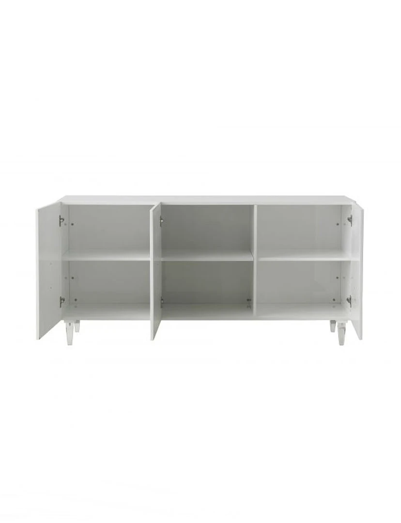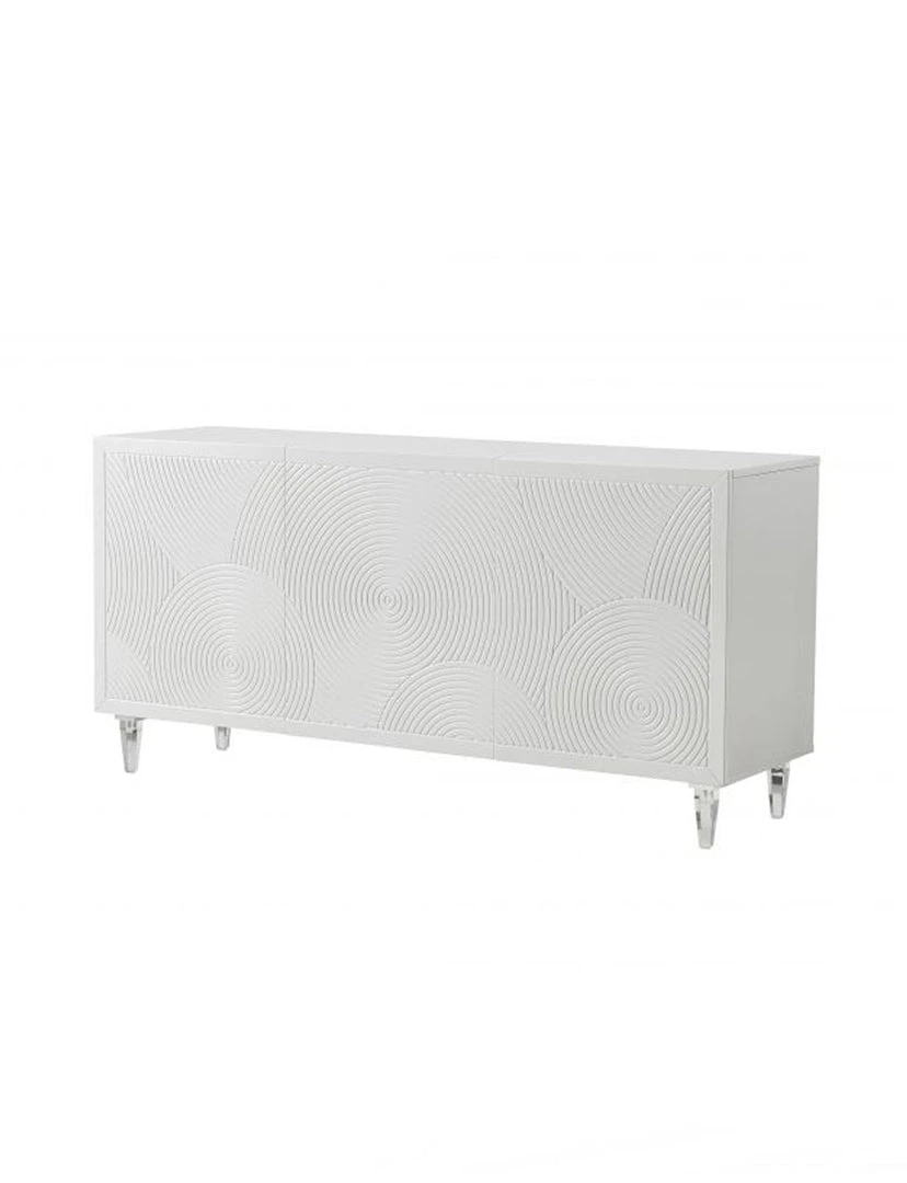 Storage space never looked so good! The Ritani buffet features abundant storage space, adjustable shelves and press-to-open doors, all beautifully packaged with a lacquer finish, elegant spiral design and acrylic legs.