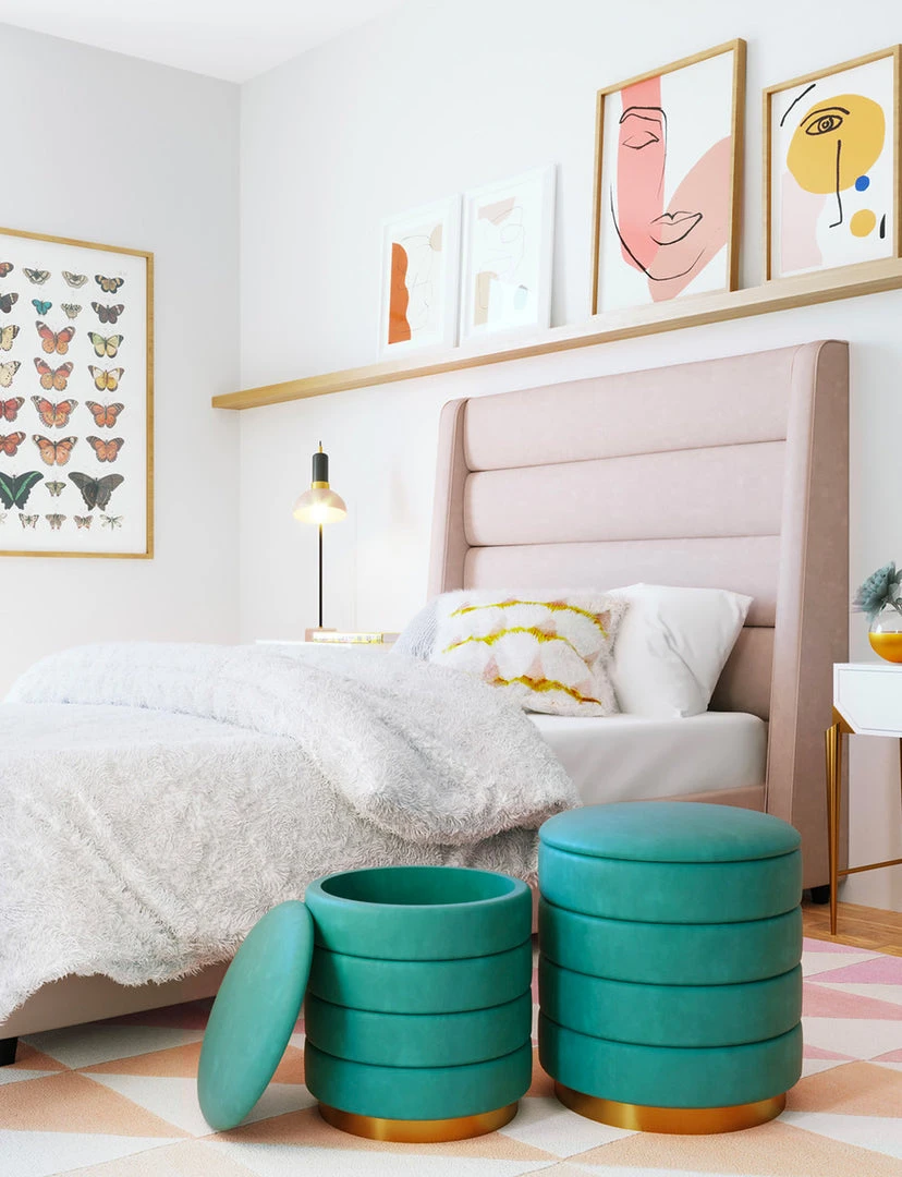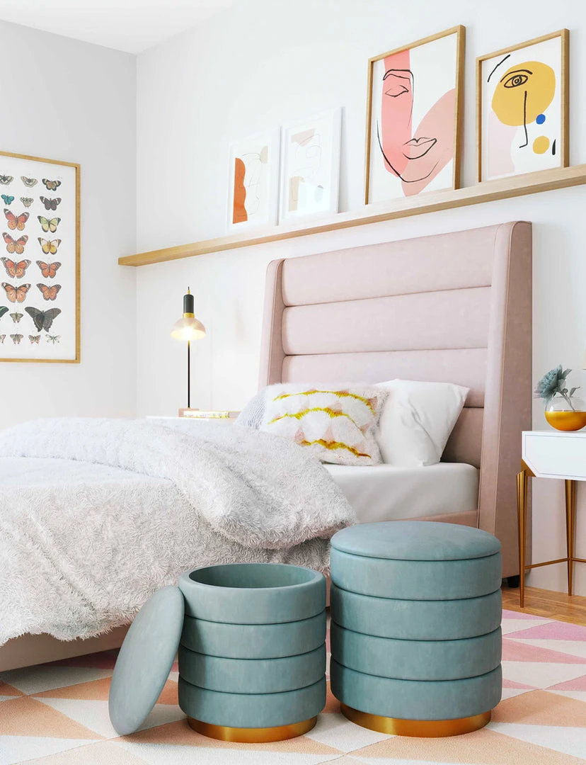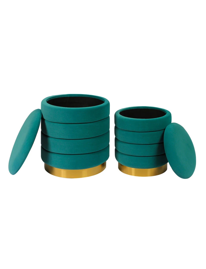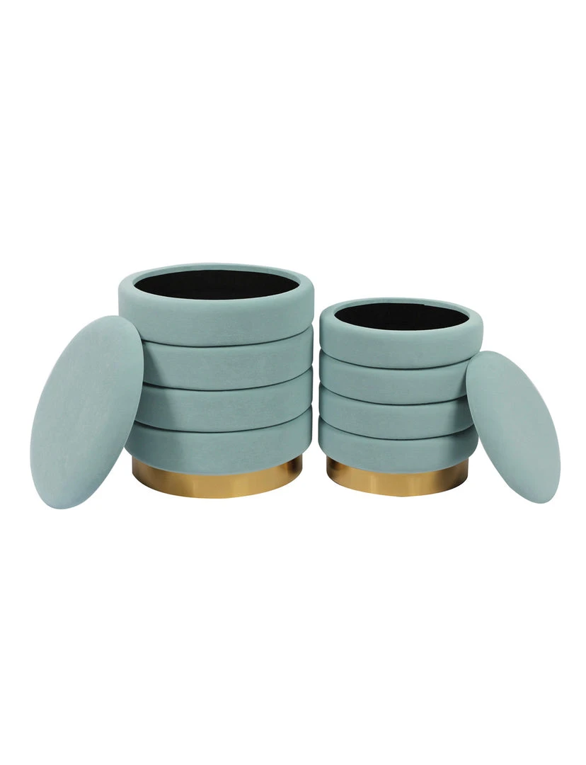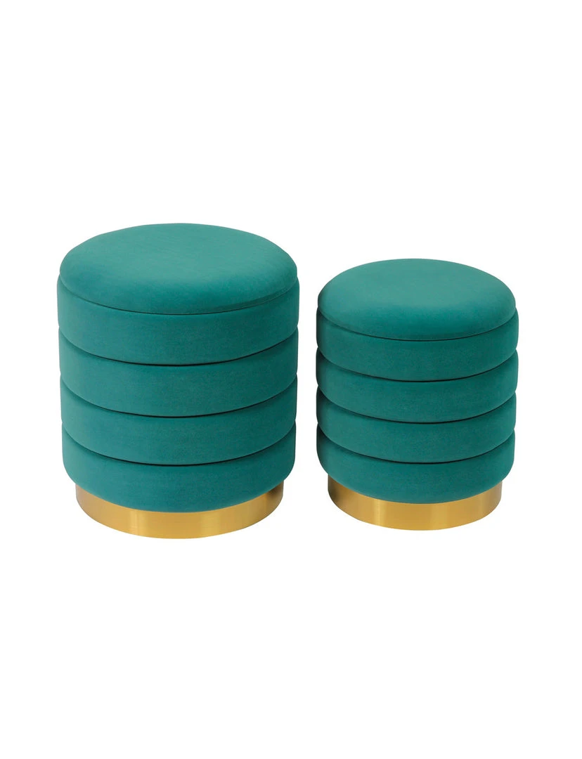 Glamorous and functional, the Sammy ottoman offers stylish design and ample storage space. Featuring channel tufting, plush velvet upholstery and a gold base, it’ll add a burst of fresh color to your space. Set includes two ottomans and is available in multiple colors.