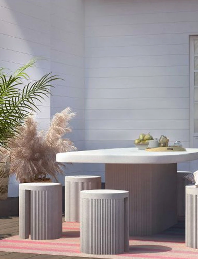 The Wade dining collection will make a bold statement in any dining space, indoors or out! Solid, concrete construction make these pieces durable and outdoor friendly. Benches and stools are great space savers for apartment living and small outdoor garden dining!
