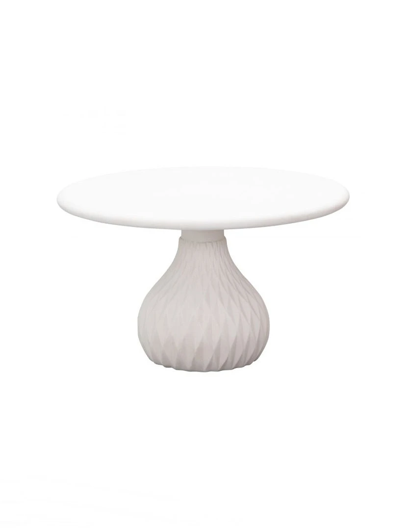Stunning indoors or outdoors, the Whipi Concrete Coffee Table brings glam style to your living experience. Masterfully crafted from concrete, this round coffee table measures 27.5 inches in diameter and boasts a gorgeous diamond-pattern design on its pear-shaped pedestal base.