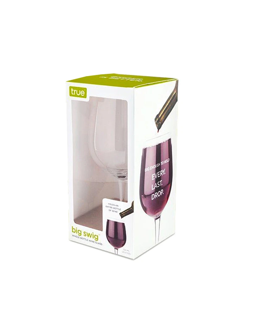 Put down your puny glasses and make way for the King Kong of vessels! This majestic beast makes a mockery of ordinary glasses. No more time consuming trips on the old sip train. Just pour in the whole bottle and drink like royalty. Finally, your big reds and mighty whites have met their match. Go ahead and try to fill it. We dare you.