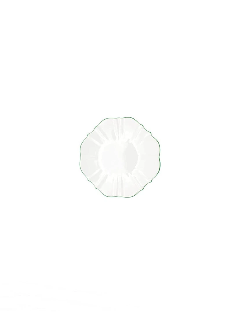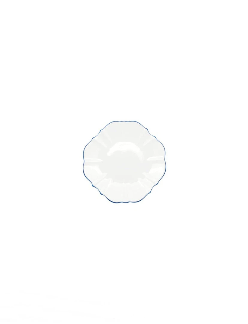 The Amelie Bread plate. Whether as a side plate, a dessert plate or for some savory tidbits, this uniquely crafted plate eschews the normal round design for a classy indented look. Designed to make sure you and your guests feel special at every occasion. Add a touch of class to your dining experience with flawless Fine Bone China finished with a red,blue,or green rim. Understated elegance from the Amelie Collection by Twig New York.