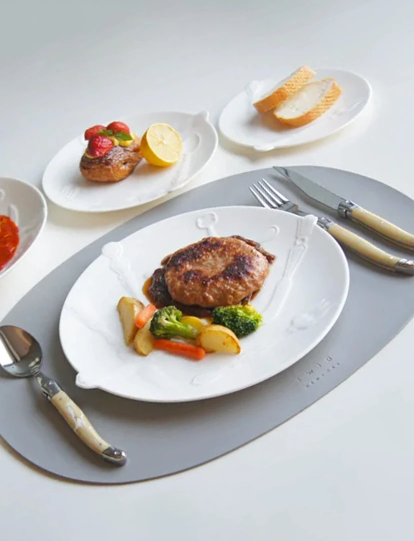 The Cutlery Dinner Plate. Antique Flatware meets modern Fine Bone China in this fascinating interpretation of Tableware. Antique cutlery shapes find themselves embossed on the pristine white surface to create a truly unique design. This plate is ideally sized for an entrée and features multiple different cutlery designs on the surface. Simplicity with a twist from the Cutlery Collection by Twig New York.