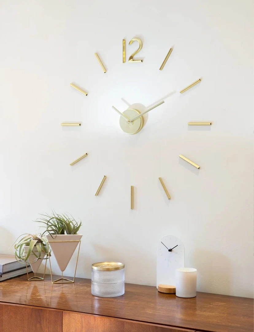 Use Blink to add a unique, decorative touch to your living room, kitchen, den, bedroom, entryway or office. The clock mechanism operates on a quartz clock movement that ensures precise and maintenance-free time measurements. Blink’s metal time indictors and the number 12 mount individually to the wall with easy to paste adhesive and the clock mechanism mounts with a screw or nail. The size is customizable depending on your preference, however if you aren’t feeling adventurous, Blink does include a preset wall template. All you need is 1 AA battery is required (not included) and you are set.