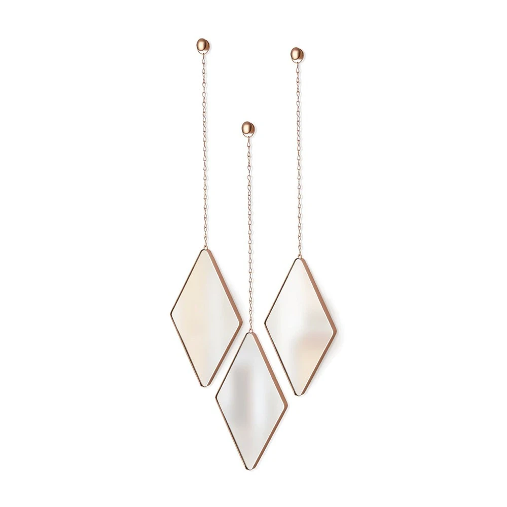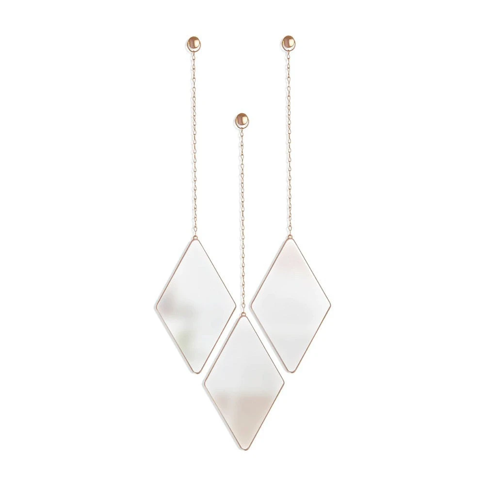Held by elegant chains, these chic trio of mirrors are a beautiful and effortless addition to any gallery wall or can make a statement on their own. The DIMA MIRROR’s diamond shape is incredibly unique and can be hung to achieve a waterfall effect.