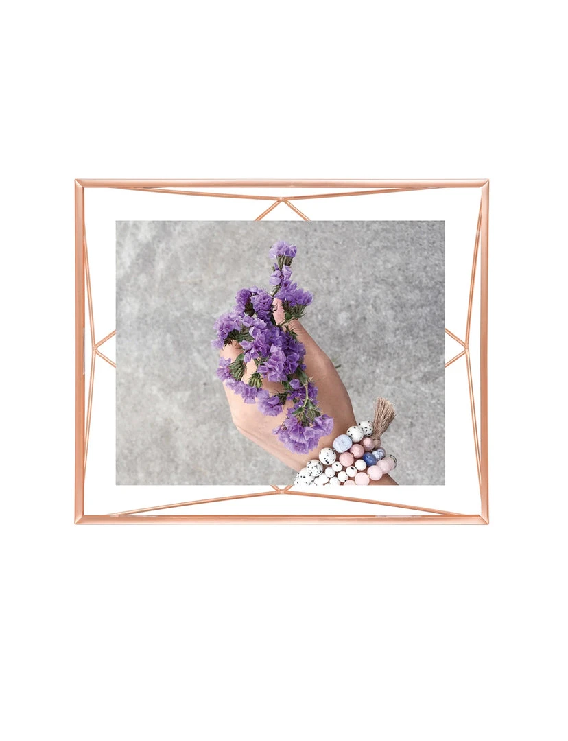 Prisma is a contemporary, unique geometric frame, with slim wiring, that seamlessly contours the chosen image, drawing, illustration, or graphic text. Resting comfortably between two sturdy panes of glass, the frame creates a floating effect and adds a degree of dimension and depth. The wires can be seen through the front of the frame, allowing for an ultra-modern display. Prisma frame can be oriented in a multitude of arrangements, including hanging or sitting, vertical or horizontal, and placed on a table or mounted on the wall. This prismatic wire frame can be easily integrated into any style of décor.