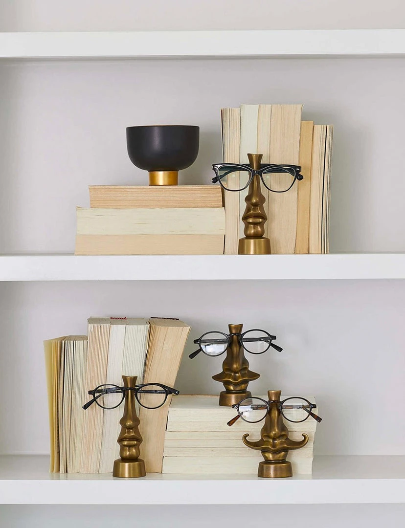 Even if you don’t need glasses you will want to get a pair to display them on our The Eyes Have It sculpture. Sculpture holds most size eyeglasses. Made of solid brass with a light antique lacquer finish.