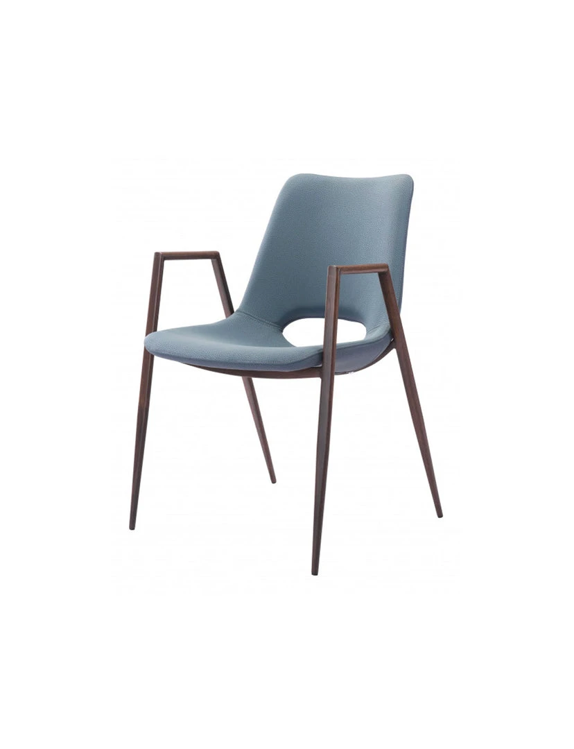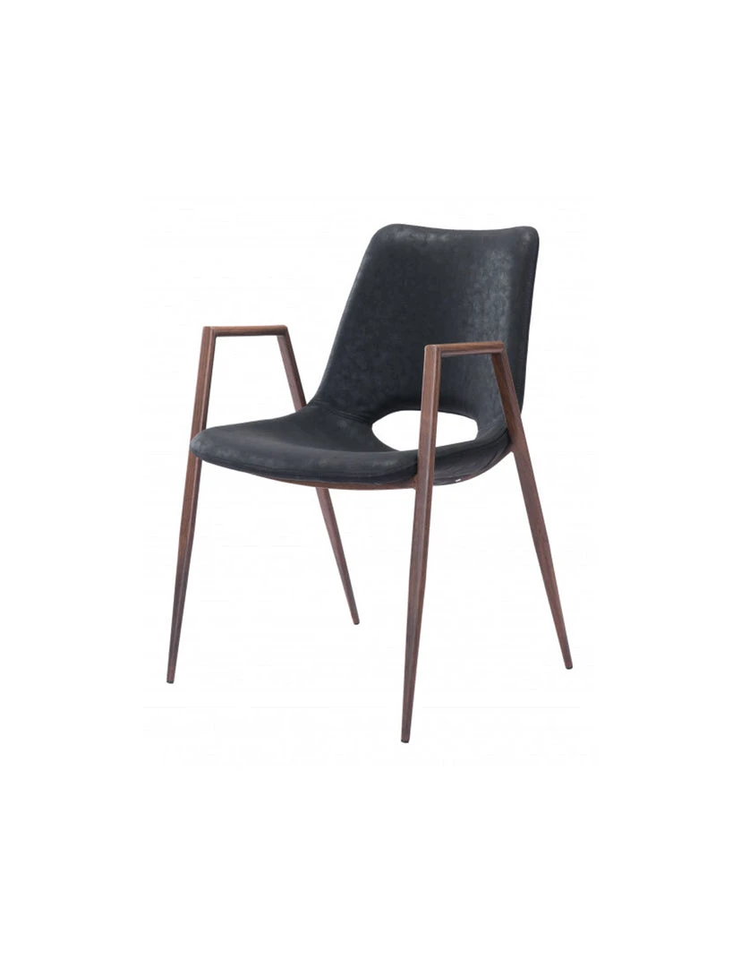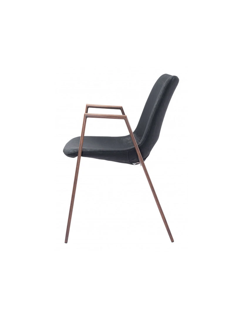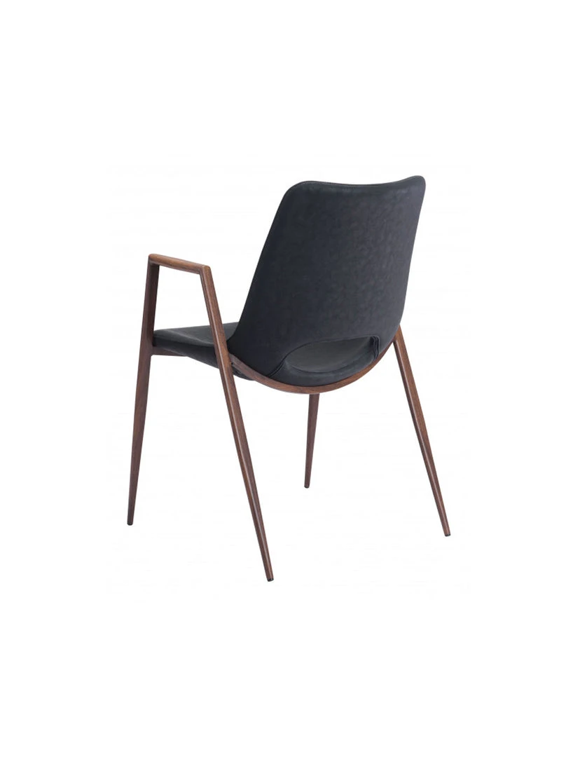 The Daze Chair has mid century modern urban lines and looks great in any space. With a heavy duty vinyl covering and a sturdy steel frame, this chair fits in any dining room, home office, or even as a bedroom accent chair. The legs are finished in a walnut veneer coating that is durable for hospitality use.
