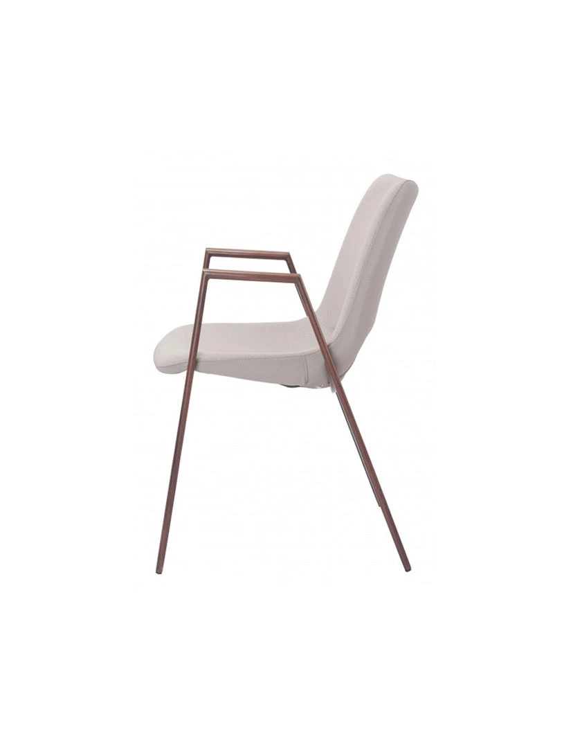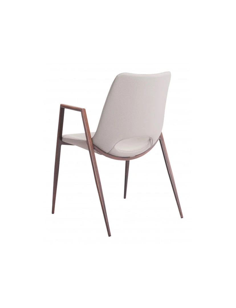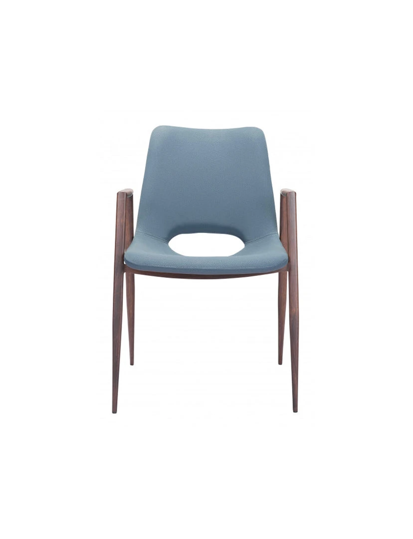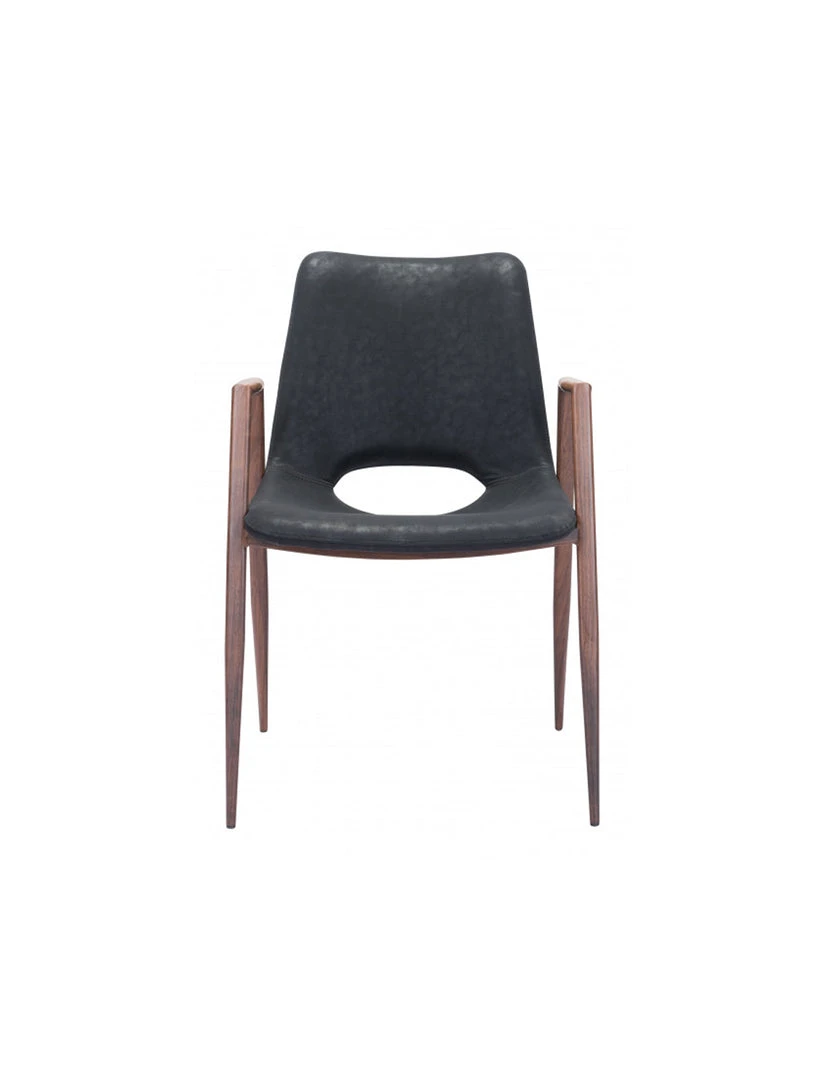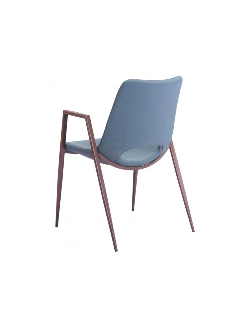 The Daze Chair has mid century modern urban lines and looks great in any space. With a heavy duty vinyl covering and a sturdy steel frame, this chair fits in any dining room, home office, or even as a bedroom accent chair. The legs are finished in a walnut veneer coating that is durable for hospitality use.