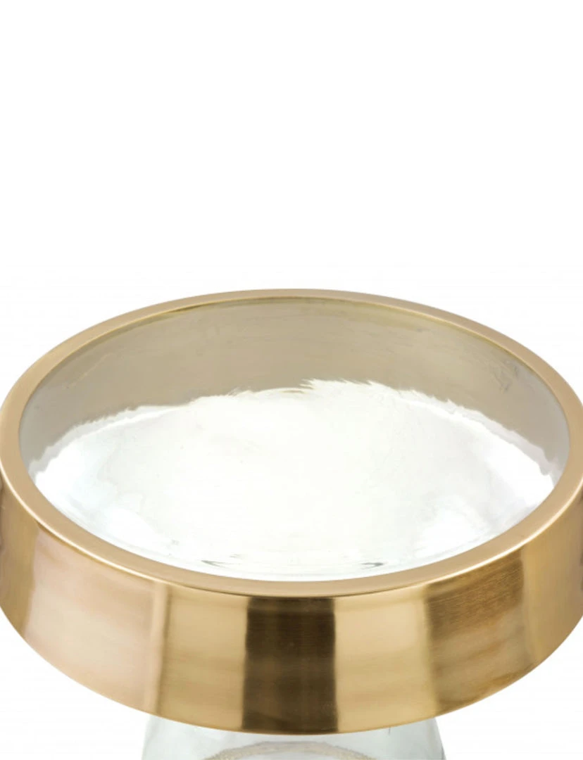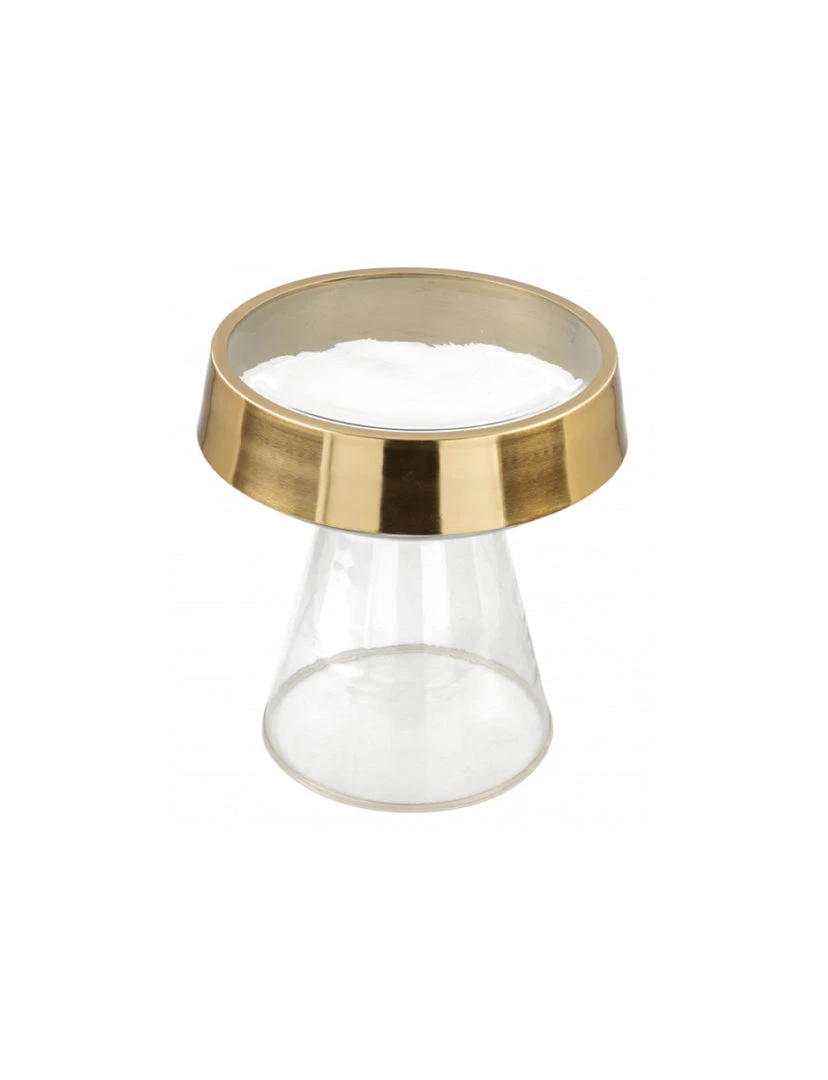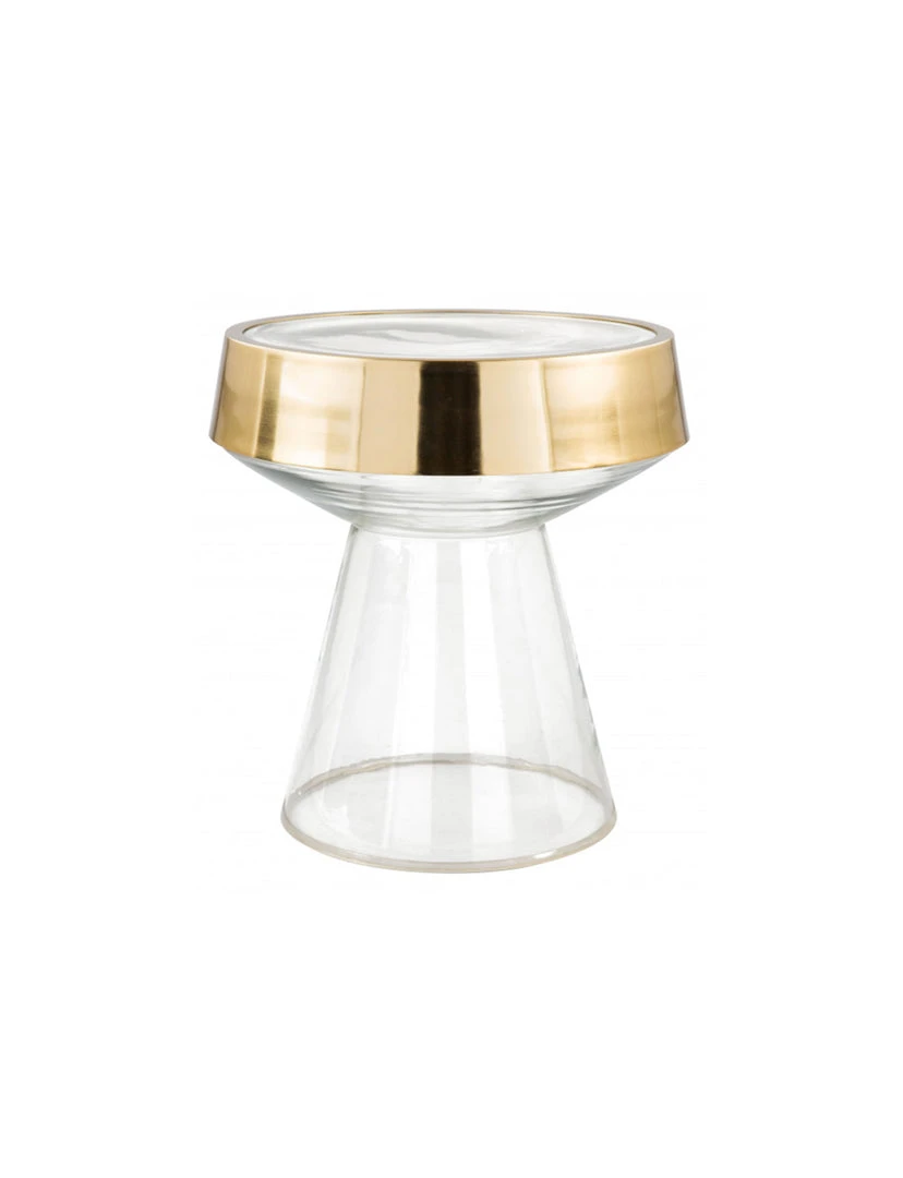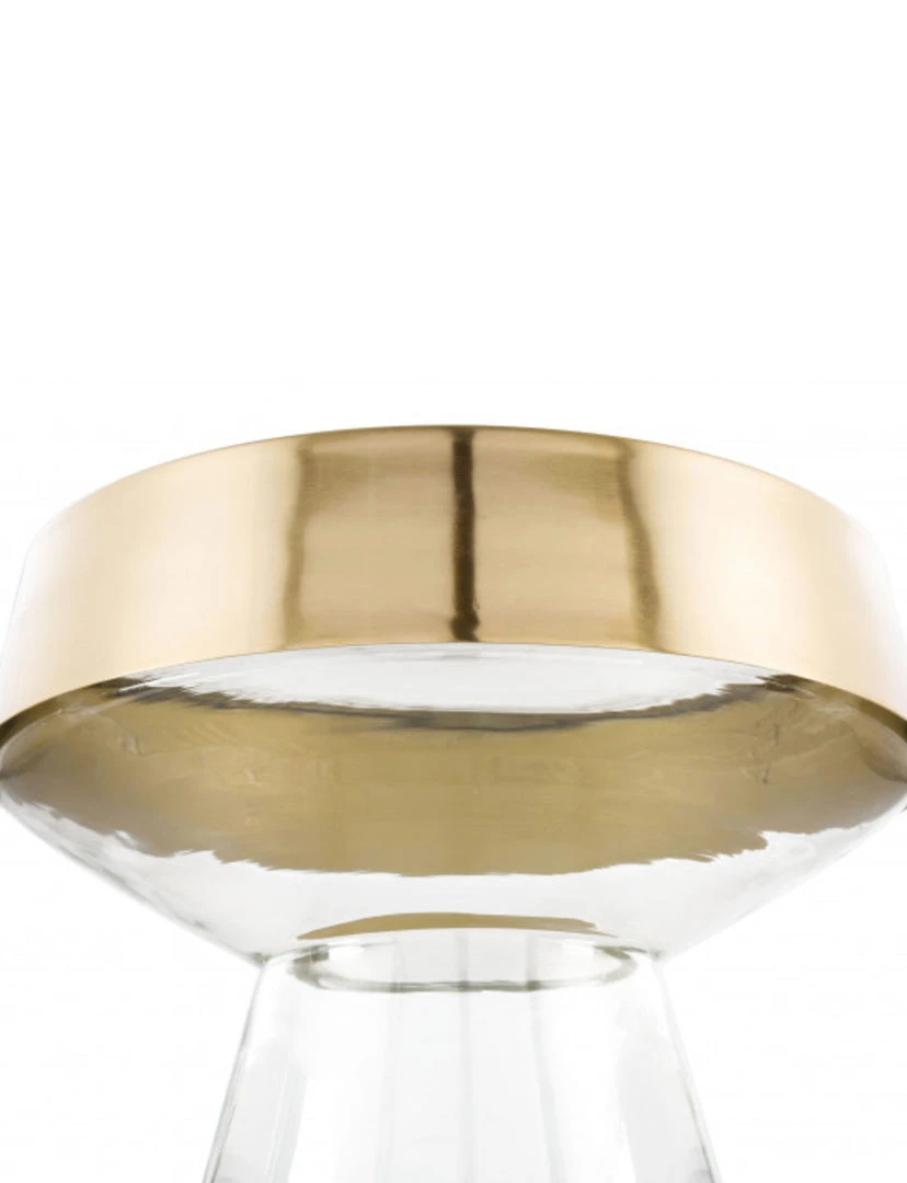 The sky is the limit for this masterpiece. A clear base that adds a minimalist look to your living room or bedroom. The gold detail wrapped around the top adds a touch of personality to this modern simplicity.